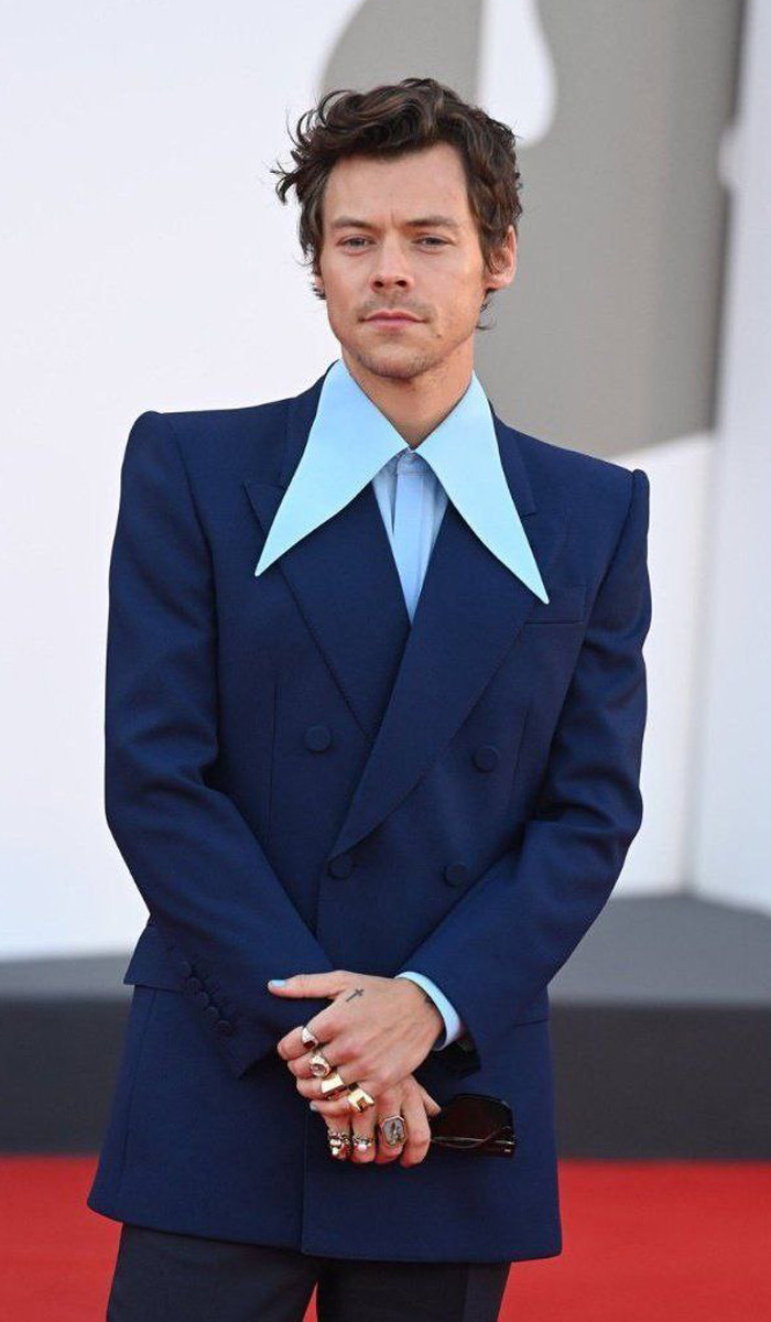 یکی از شاخصترین ویژگیهای هری استایلز، سبک پوشش منحصربهفرد و جسورانه اوست. او بدون توجه به کلیشههای جنسیتی، از لباسهایی با طرحهای رنگارنگ، پارچههای گلدار، لباسهای زنانه، و مروارید استفاده میکند.
